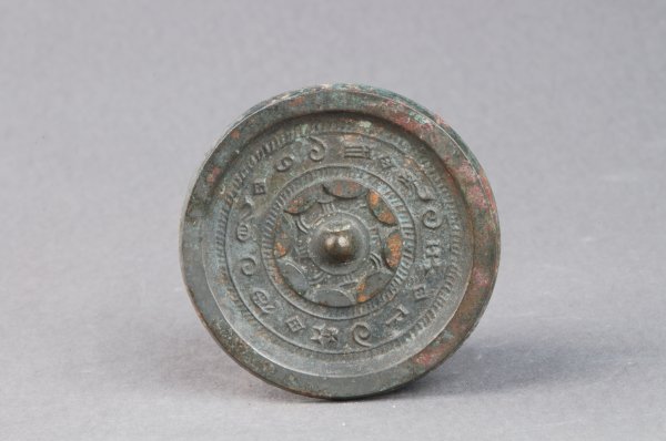 日光镜 汉 铜镜 直径8.9 鹤壁市石林收购站购买 圆形,圆钮,圆座。座外一周内向八连弧纹,其外两周短斜线纹之间有一周铭文带,铭文为:见日之光,天下大明。...