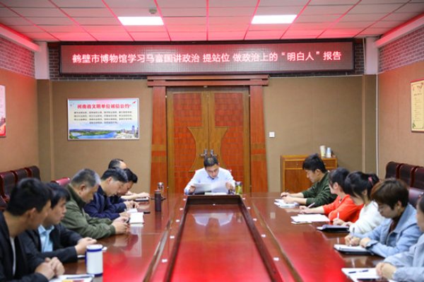 4月17日,鹤壁市博物馆在五楼会议室召开全体职工大会,学习传达马富国在市委党校春季主体班上的辅导报告精神,深刻把握理解辅导报告精神实质,着力抓好贯彻落实。 报告以《讲政...