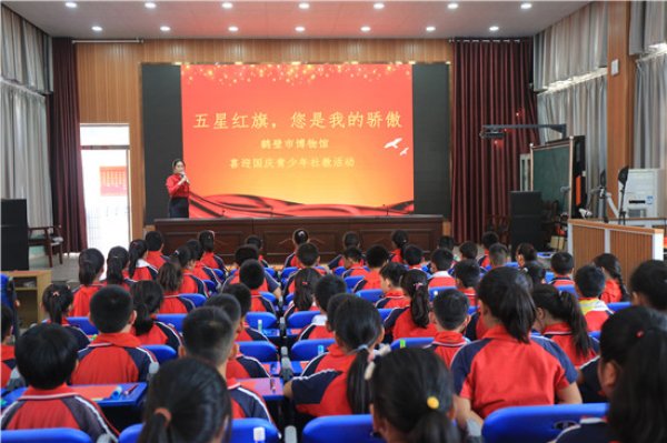 为充分发挥爱国主义教育基地的作用,在国庆节到来之际,鹤壁市博物馆组织开展五星红旗,您是我的骄傲鹤壁市博物馆喜迎国庆青少年社教活动。组织讲解员走进鹿鸣小学,为孩子们...